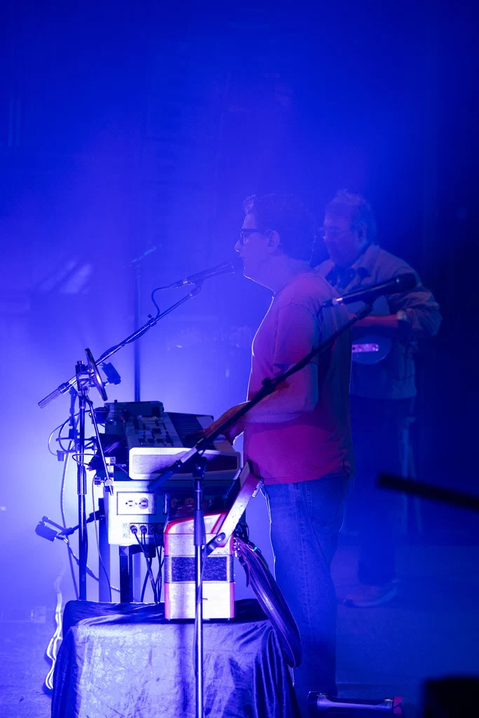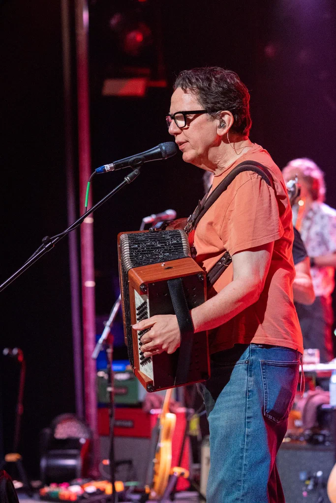 Photos of They Might Be Giants, a returning guest on JoCo Cruise 2025, during their main stage performance.